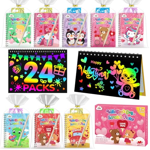 View full details24 Pack Scratch Art Party Favors - The rainbow scratch notebook including 24 pack scratch note pads(5.5 x 3.9 inches), 24 wooden styluses, 24 draw...