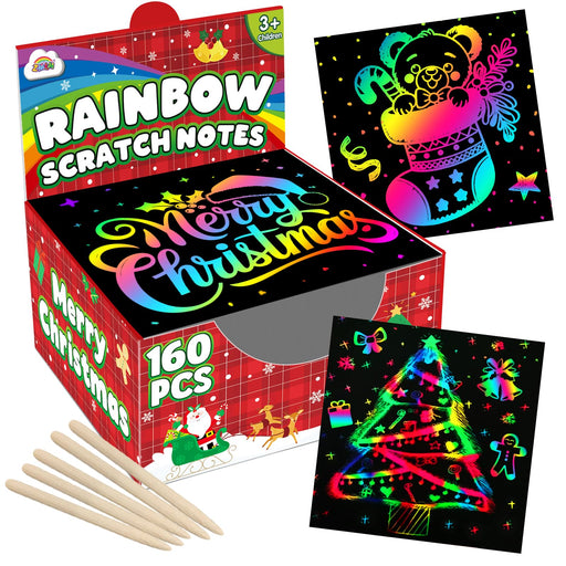 View full details🎨 125 Sheets Mini Rainbow Scratch Notes – Includes 125 colorful scratch-off papers (3.5" x 3.5") and 5 wooden styluses. Perfect for doodling, wri...