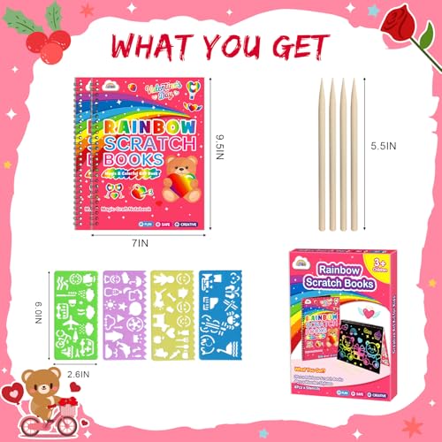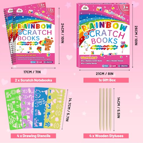 View full details🌈 Magic Rainbow Scratch Art Book Set Each scratch art set includes 20 spiral-bound scratch pages, 4 wooden styluses, and 4 reusable drawing stencil...